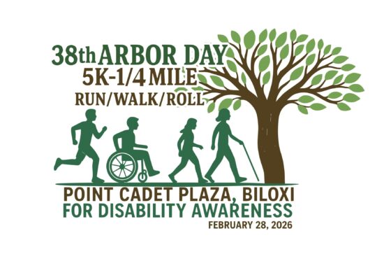 Those paying the registration fee will wear their t-shirts and meet at Point Cadet Plaza in Biloxi, to participate in the Arbor Day 5k-1 mile-1/4 mile Run/Walk/Roll. This event is brought in partnership with the Gulf Coast Running Club, the most respected running club in South Mississippi. The race includes a 1/4-mile challenge so that everyone, including wheelchairs, can participate in the healthful benefits of a run with awards following. Those with challenges to running receive a medallion.